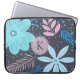 Modern Big Blue Flower Pattern Pink Monogram Laptop Sleeve
