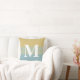 Modern Big Stripes Big Letter Monogram Khaki Blue Cushion