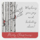 This modern red and grey winter and holiday season square sticker features hand-drawn birch trees with red Cardinal birds perched on branches in black ink, all against an elegant soft grey background. All text is editable. Personalise with your favourite Holiday greeting, your family name and a personal message.