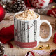 This modern winter and holiday season mug features hand-drawn birch trees with red Cardinal birds perched on branches in black ink, against an elegant white background. All text is editable. Personalise with your favourite Holiday greeting and your family name.