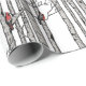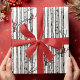 This modern winter and holiday season wrapping paper features hand-drawn birch trees with red Cardinal birds perched on branches in black ink, against an elegant white background.