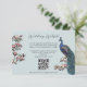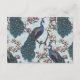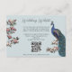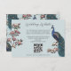 This Modern Bird Website QR Code Enclosure Card features hand-drawn blue and teal peacock bird and magnolia flowers and an elegant pattern on the back. All text is editable.