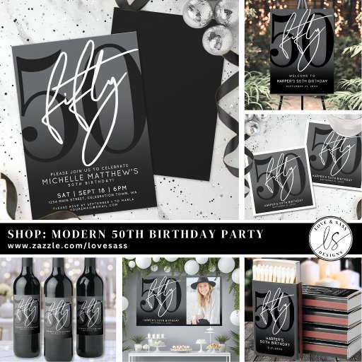 Modern Black 50th Birthday Party Invitation