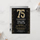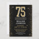 This fabulous black and gold men's 75th birthday party invitation featuring the number 75 in gold with modern fonts and gold glitter sides on the front and a fabulous black and white photo on the back would be perfect for asking people to join you as you celebrate the man in your life's 75th birthday. It is traditional and classic while being fresh, modern and contemporary. To see your unique invitations select "Personalise this template" and type in your information and your favourite photo. The template will turn your photo black and white for you. It's super easy!
