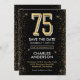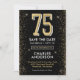 This fabulous black and gold men's 75th birthday party Save the Date card featuring the number 75 in gold with modern fonts and gold glitter sides would be perfect for asking people to put this special date aside for the man in your life's upcoming 75th Birthday Party. It is traditional and classic while being fresh, modern and contemporary. To see your unique save the date cards select "Personalise this template" and type in your information. It's super easy!