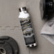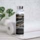 Modern Black Agate Gold Glitter Script Monogram Water Bottle