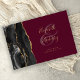 This elegant wedding guest book features a black watercolor agate design trimmed with faux gold glitter. Easily customise the gold-coloured text on a burgundy background, with the names of the bride and groom in whimsical handwriting calligraphy over a large ampersand. Add additional text of your choice to the front and spine.