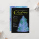 Modern Black And Blue Merry Christmas Tree Party Invitation