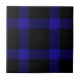 This ceramic tile features a modern black and blue tartan (plaid) pattern.