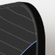 A modern Monogram Pickleball Paddle showing a black and blue design with stripes. This elegant striped design shows the blue monogram in a circle at the left top corner of the Pickleball Paddle.