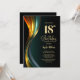 Invite your friends and loved ones to your 18th birthday celebration with this sleek black invitation featuring a vibrant abstract wave border. The customizable text area in this invitation template allows you to include all the necessary details for your special birthday celebration, including the date, time, venue, and RSVP information. A variety of paper types and corner styles are available for your unique invitations, along with the option to download if you prefer a digital format.
