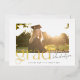 This modern and trendy graduation announcement features a black and gold colour palette and a large photo of your graduate. A bold and stylish "Grad" adorns the front in real gold foil. The back of the card features simple type allowing you to tell more about your graduate and their plan for the future. Or, you can change it to a graduation party invitation. You can find other versions of this design in my Zazzle store.