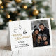 Send holiday cheer in style with this modern whimsical photo Christmas card in elegant black and gold, featuring hand-drawn Christmas baubles and a hand lettered Merry Christmas. A gold frame creates the perfect space to showcase your favourite family photo, making this card both personal and timeless. With its minimalist yet festive design, it’s a beautiful way to share warm Christmas greetings and New Year wishes with loved ones. Customise easily to create a keepsake your family and friends will treasure. Add your own photo, family name and family members to the front and there's space inside to write a personalised message for the recipient.