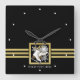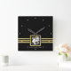 Modern Black and Gold Glitter Ice Skating Square Wall Clock
