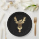 Elegant Faux Gold Reindeer wearing Santa Hat and Christmas Bell, Stylish Black and Gold Look Christmas Party Paper Plates