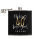 Modern black and gold typography 40th birthday hip flask