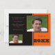 This classic graduation announcement is perfect for announcing or inviting! This design has a black background on the left and an orange background on the right. Customise with your own text and photos. Add text to the back if you choose. Available in many school colours or contact me and I will customise one for you.