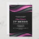 Invite your friends and loved ones to your 75th birthday celebration with this modern black and pink invitation. The customizable text area in this invitation template allows you to include all the necessary details for your special birthday celebration, including the date, time, venue, and RSVP information. A variety of paper types and corner styles are available for your unique invitations, along with the option to download if you prefer a digital format.