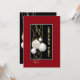Invite your guests with this modern black and red Christmas party invitation featuring elegant gold and white ribbons and baubles. This invitation is suitable for corporate and family Christmas celebrations.