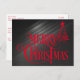 Modern Black and Red Merry Christmas Script Holiday Postcard