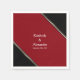 Modern red and black wedding napkins featuring the bride and groom's names and their wedding date.