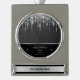 The circular upper portion is a dark sparkling charcoal gray with glistening silver icicles, and below this is a sleek black area where silver scrolls are above and below your personalized text in a silver-colored script font. Your text is flanked by two stars that match the sparkling stars on the icicles above them.
