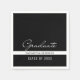 Add a stylish touch to your celebration with these simple and modern black and white graduation party napkins. Featuring a clean, elegant design, these custom napkins can be personalised with the graduate’s name, class year, and school for a sophisticated party detail. Perfect for high school and college graduation parties, these high-quality disposable napkins complement any graduation theme while making cleanup easy.