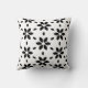 A chic black and white abstract floral print features elegant black flower petal shapes on a crisp white background.