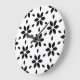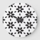 A chic black and white abstract floral print features elegant black flower petal shapes on a crisp white background.