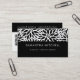Modern black and white business card with geometric floral pattern (abstract dahlias). Remarkable, bold, and modern.