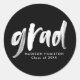 Modern Black and White Brush Script Graduation Classic Round Sticker