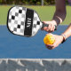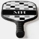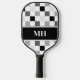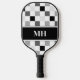 Modern Black and White Chequered Initials Monogram Pickleball Paddle