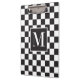 Modern Black and White Chequered Pattern Monogram Clipboard