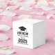 Modern graduation party favour boxes feature a grad cap with simple and black typography design that can be personalised with the graduate's name and school. White background and black text can be customised to match school or party theme colours.