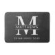 Modern Black and White Custom Bath Mat - Shown in charcoal grey, but other colours are available. Doormat features your Monogram and last name, and the year your home was established. This would make a wonderful wedding or housewarming gift. Part of a collection.