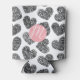 Modern Black and White Doodle Hearts Monogrammed Can Cooler