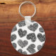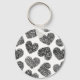 Modern Black and White Doodle Hearts Pattern Key Ring
