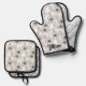 Modern Black and White Floral Mum Personalised Oven Mitt & Pot Holder Set