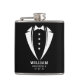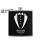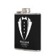 Our personalised flask is the ultimate gift for the stylish and sophisticated groomsmen in your wedding party. Wrapped in high-quality vinyl, the sleek white tuxedo silhouette adds a touch of class to this must-have accessory. Personalised with the groomsmen's names and the date of your wedding, this flask is not only practical but also serves as a cherished keepsake.