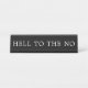 The best way to object to anyone or any task, this Modern Black and White Hell to the NO Sign nameplate is perfect for home or office. Sarcasm always works, but who's to say you're kidding. LOL