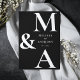 Modern black and white wedding invitation featuring your personalised monogram initials in elegant minimalist typography. Add custom text with all the details of your special day.
