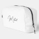 Create your own custom, personalised, beautiful modern elegant black script / typography monogram monogrammed, durable Polyester Poplin, sturdy polyester fabric mens womens kids solid plain white cosmetic makeup toiletry organiser golf beach accessory gym travel dopp kit bag pouch with a zippered closure, two interior mesh pockets - one zippered and one elastic, and a convenient carry-handle that doubles as a hanging strap. Simply type in your name / initials / monogram, to customise. Make a great gift for birthday, fathers day, mothers day, christmas, holidays, new years, wedding, marriage anniversary, and more, for your loved ones, mum, dad, husband, wife, bride, groom, bridesmaid, groomsmen, son, daughter, sister, brother, grandpa, grandma, grandparents, grandkids, kids, family and friends.