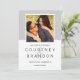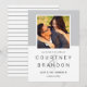 Modern wedding save the date announcement cards feature a square engagement photo framed in platinum grey with a simple and minimalist style monogram of the bride and groom names with an elegant script ampersand. Personalise the save the date wording with the wedding date and location. The back of the card includes a sleek pattern of thin black and white horizontal stripes.
