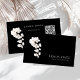 Modern Black and White Orchids QR Code Floral Business Card