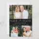 Elegant, multi-photo save the date featuring "Save the Date" displayed in white lettering with a black background. Personalize the modern QR save the date card with 3 of your favorite photos, your names, wedding date, and wedding location. The black and white save the date reverses to display your custom QR code with wedding website and custom text.