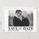 Modern Trendy Save The Date Black and White Photo Card with block script and calligraphy script combination.