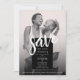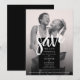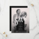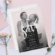 Make your wedding announcement memorable and stylish with this simple chic save the date wedding card featuring a minimalist black and white design, complemented by a striking, modern, white brush script. You can add a lovely photo of the happy couple- colourful or black and white ( your choice) - on the front, and a chic black background on reverse, it's the perfect canvas for customisation. Personalise the text and photo to create your own modern elegant save the date card, available in both print and digital download formats.