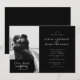 custom couple photo on horizontal black and white wedding invitation with typography.