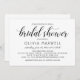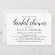 Modern and chic black and white wedding bridal shower invitations feature a stylish black typographic design with bold calligraphy script accents and elegant custom text that can be personalised for the stunning event in honour of the bride to be.