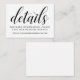 Modern and chic black and white wedding details cards feature a stylish black typographic design with bold calligraphy script accents and elegant custom text that can be personalised with wedding website information.